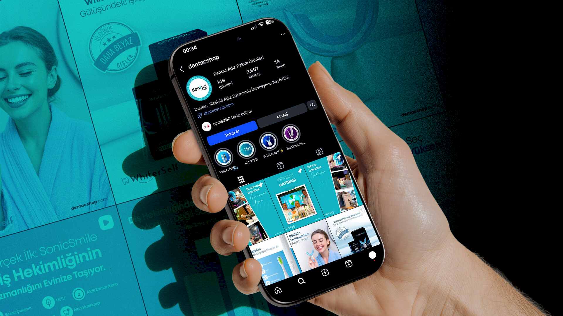Dentac Shop için hazırlanan dijital çalışma; ağız ve diş sağlığı sektörüne uygun, modern ve güven veren bir marka deneyimi sunuyor. Sosyal medya katalogları ve web arayüzünde kullanılan sade tasarım dili, net ürün sunumu ve kullanıcı odaklı yapı sayesinde markanın dijital kimliği güçlendirildi.